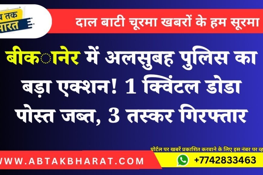 Bikaner News: राजस्थान के बीकानेर रेंज में पुलिस की स्पेशल टीम ने अलसुबह बड़ी कार्रवाई करते हुए मादक पदार्थ तस्करी के खिलाफ बड़ा खुलासा किया है। इस दौरान 1 क्विंटल 10 किलो डोडा पोस्त जब्त कर 3 अंतर्राज्यीय तस्करों को गिरफ्तार किया गया है।